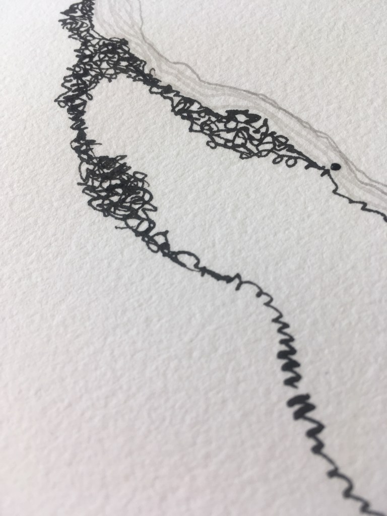 So… wind forward… the ACE grant lands in my bank account and the first thing I do is buy another load of paper. And I have the money to buy more as and when I need it. Suddenly, I don’t need to be so precious, so I start taking more risks with the ink, paint, pens and brushes, and squirts of water, and pencils too. I can experiment more freely, knowing there is more if I mess it up. Being able to take the risks has paid off.