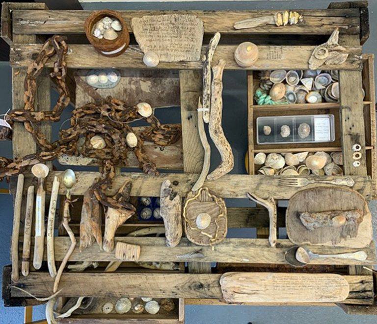 In another part of my studio lay a box. A rough hewn box, made from some sort of packaging wood reclaimed from elsewhere, that had mysterious and unidentified calligraphic Japanese(?) markings on the side. Inside were a series of compartmentalised trays, fitted snugly with ribbon tags on the edges to lift them out. The inside wood was smooth and worn and carefully crafted. Smooth on the inside, rough on the outside. I was given it more than ten years ago, and it did contain a few sea shells, because the giver thought I might like to draw it, or give it to classes of children to draw. I think I did a couple of times, but it never really sparked anything. So it sat on my shelves gathering dust, waiting. I have come to know an artist who lives and works much closer than Sweden, just across the other side of town, who has a penchant for limpets. I say penchant, but that implies a vague, passing fondness… Helen Garbett’s relationship with limpets in much deeper than that – again look her up: https://www.facebook.com/limpetsthroughtime/ her work has museum-like qualities, collections, assemblages, constructions, drawings… supported by continued anthropological research into the human use and significance of limpets. So this box, rough on the outside, smooth on the inside, just like the limpet shells, has been donated to Helen’s Limpetarium. It will sit among her work perfectly, far better than on my shelves.
