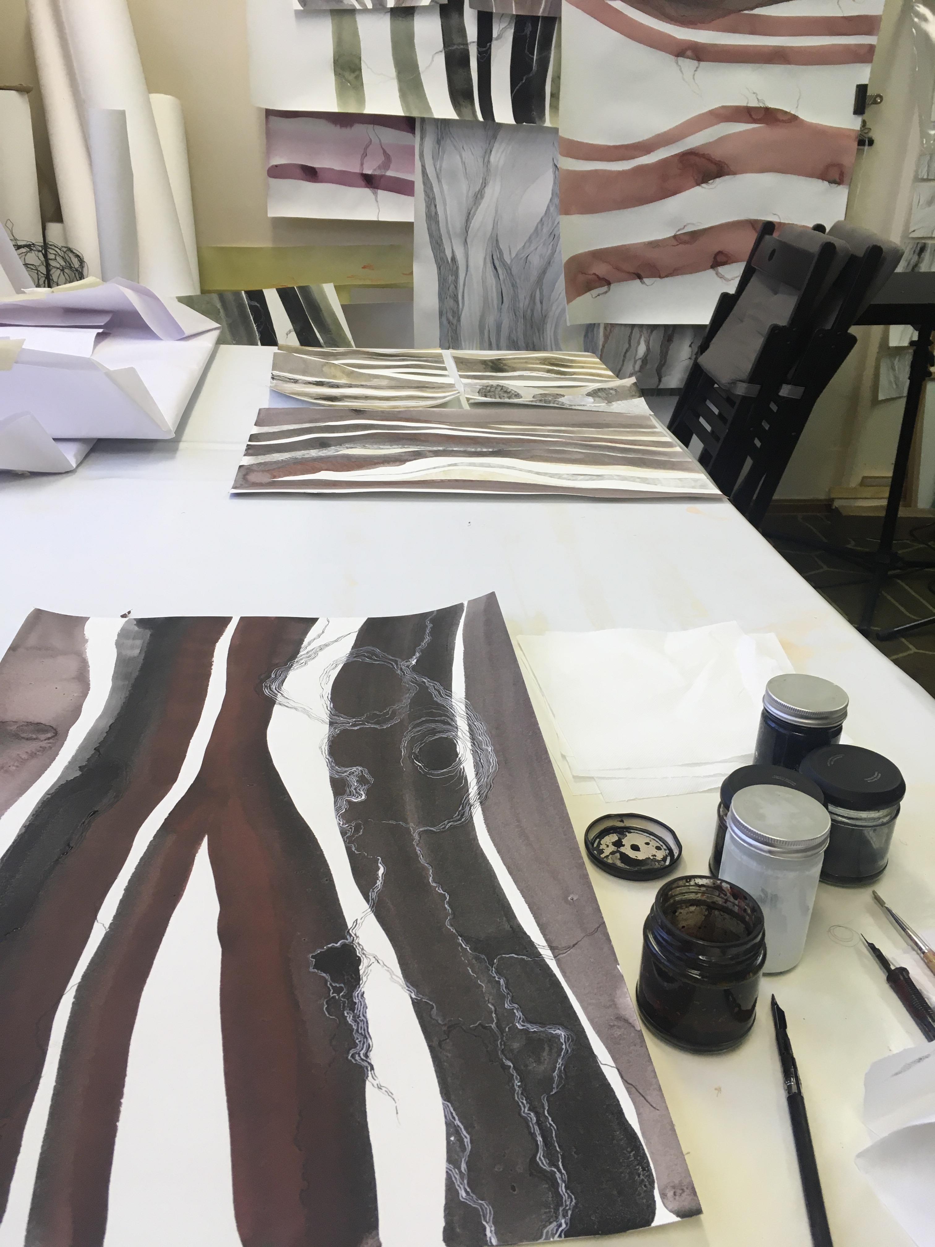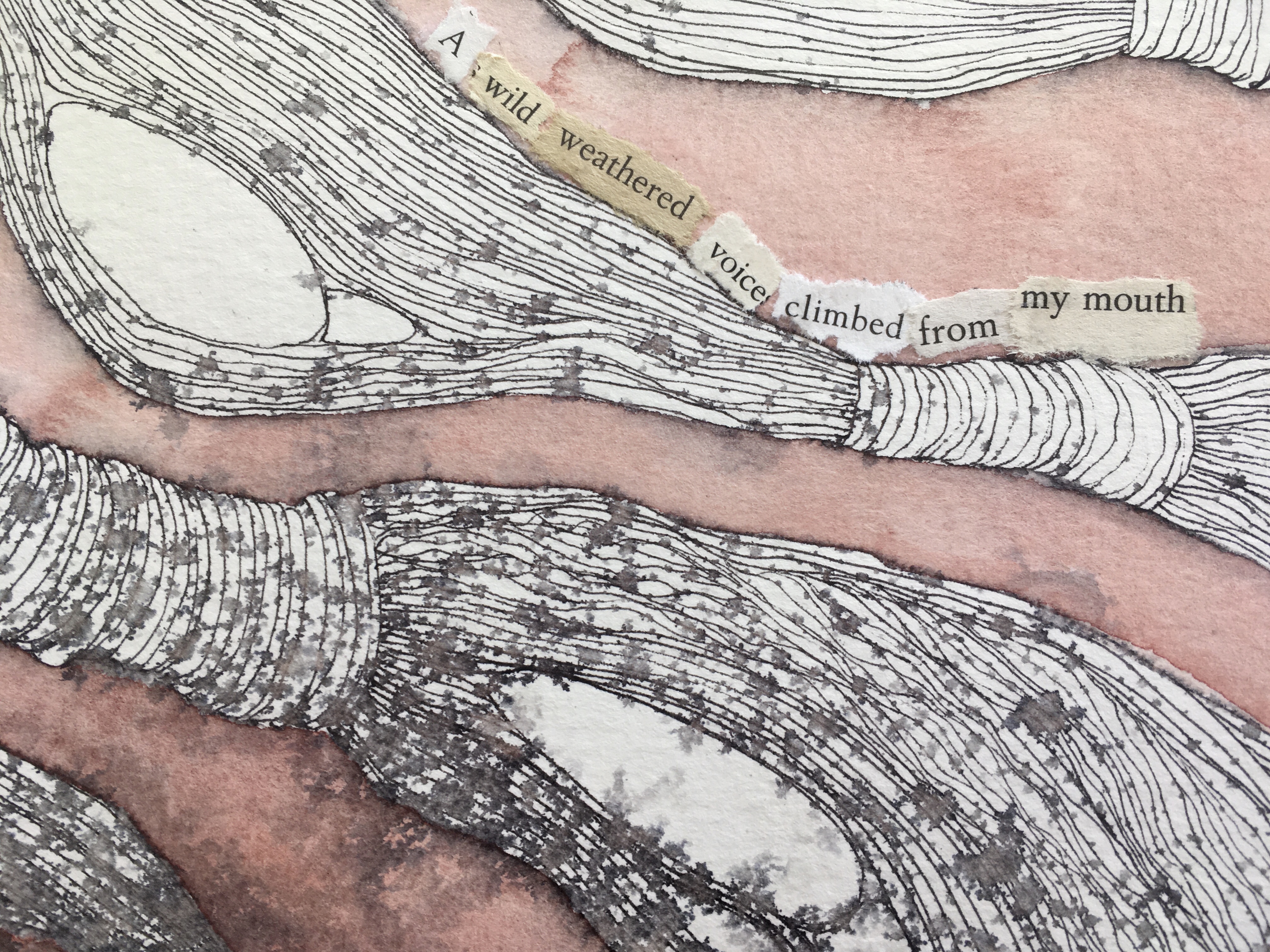 Some of the marks I make are bold and unswerving, strident, strong, unyielding. Some are tentative, broken, tangled. They are remnants of drawings done before. They hold the touch of leaves, bark, feathers and hair, water, skin, blood, bone and sinew. Those years of drawings have been experienced, held, absorbed. They’ve sunk in, embedded themselves in memory… mind and muscle… they are in my skin, blood, bone and sinew and now they are leaking out onto the paper.