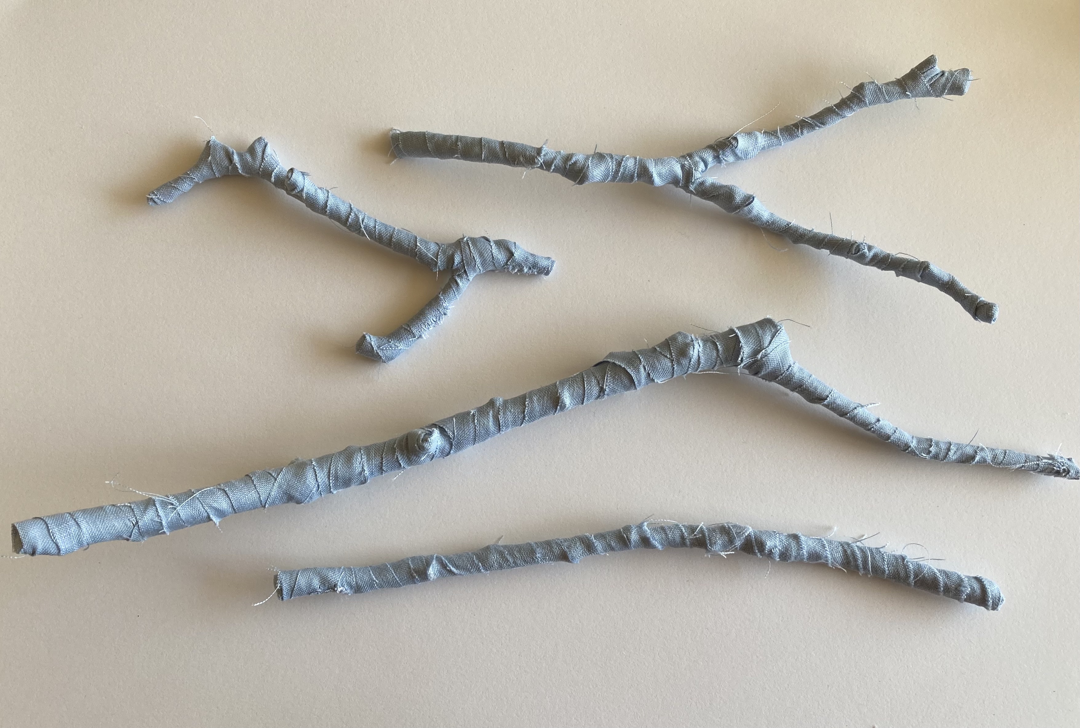 I love this. Seeing you walking and also wanting to see the twigs more but loving them bandaged too. I’m imagining them all pinned up in a gallery space like the first image but on a white wall. In sets. For some reason. I’m also wanting to hold them and feel the fabric. So I too can feel a part of the caring. The taking care of bit.