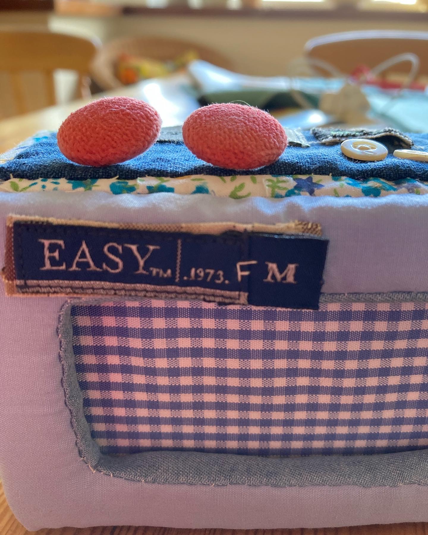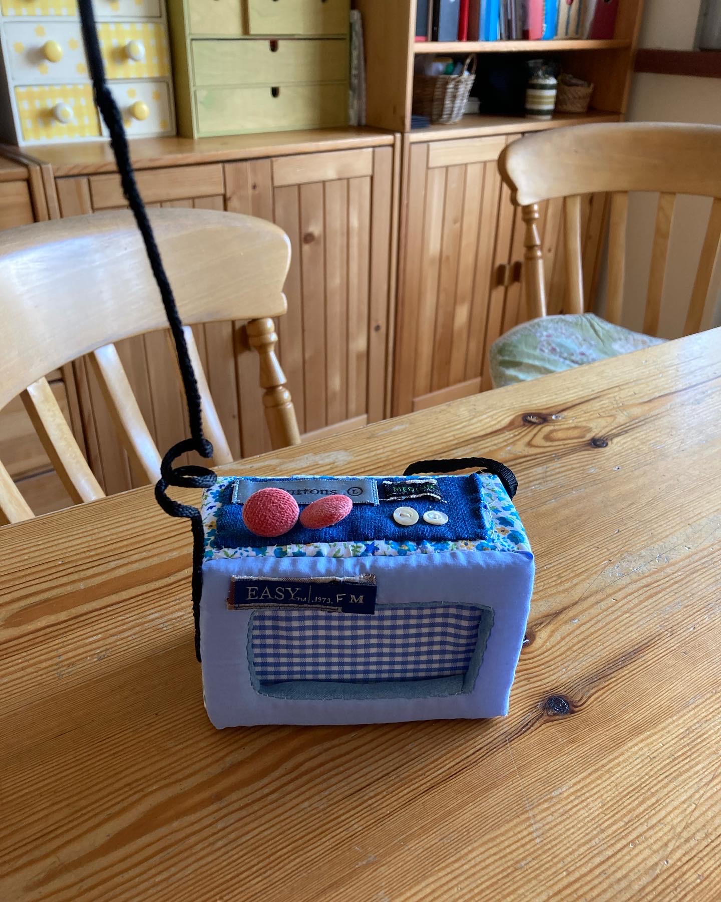 So the other day, after we at Radio Public had the idea to make more radios, I spent the afternoon making a fabric radio. I gathered a few scraps together, a bootlace, milliners’ wire, some old garment labels, a little box, some packaging materials and (a last minute stroke of genius if I might say so myself) a handful of little bells – because every radio has a jingle!