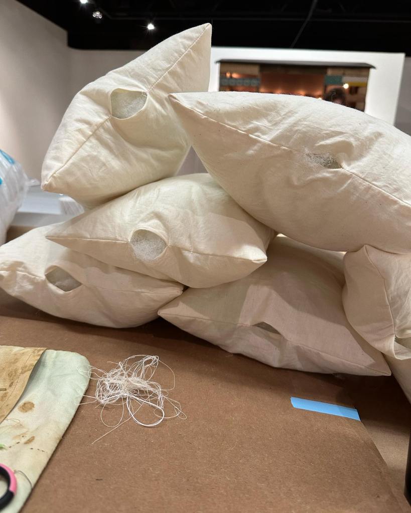 I hadn’t anticipated the emotional territory I would tread in letting go of my work to allow someone else to curate a show. Part of me thinks this is great, and I will see the work afresh through someone else’s eyes. At the moment though, a bigger part of me is worried. Worried that my bras won’t be shown in a way that allows them to communicate… or the babies won’t look like they are playing, or that people can communicate with them in the way I had originally conceived. I also find myself thinking “Exactly HOW IMPORTANT is this?” I had all of this work hanging in groups when it was first hung… and it worked. I liked it, it did what I wanted it to. But how important is it that the work is hung in exactly the same way this time round? It is in a new space, with a new audience, with the rest of my work surrounding it to give it a context. Maybe a new view of it is a good thing… but I still find myself torn. I have had discussions about it all with Debra, and there have definitely been compromises on both sides I know. And they are doing all the hard work, and it’s their gallery, so once I have had my say, I do need to trust it will be ok. Debra is posting tantalising (but cautious) shots of the installation, not to give too much away. But I am now desperate to see it all! I should be over there in just under a month, so will be able to see it in all its glory. She is telling me it will be beautiful. I trust her, so it will be I’m sure.