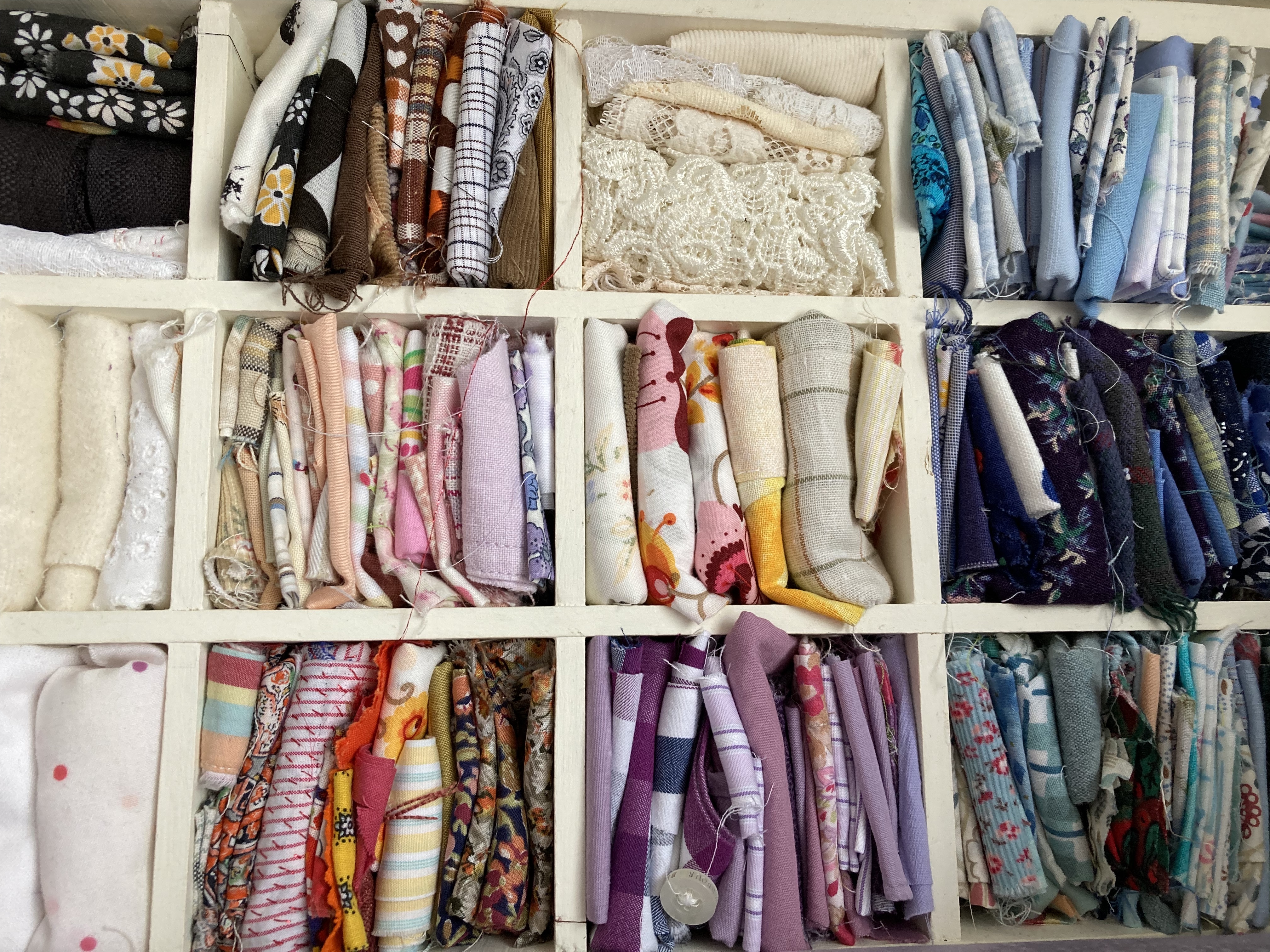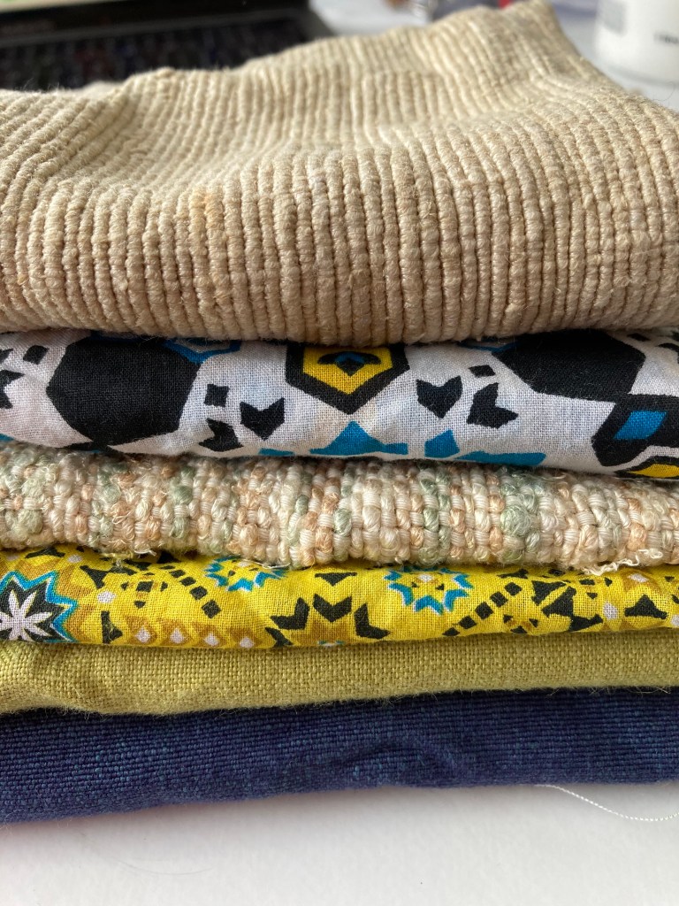 While the work is out and hung, I am taking time just to tidy up and clear the decks. I currently don’t have any Real Work on, so as I tidy up I am taking photos of the piles of things that please me. I have nothing in mind except that pleasure. It is refreshing.