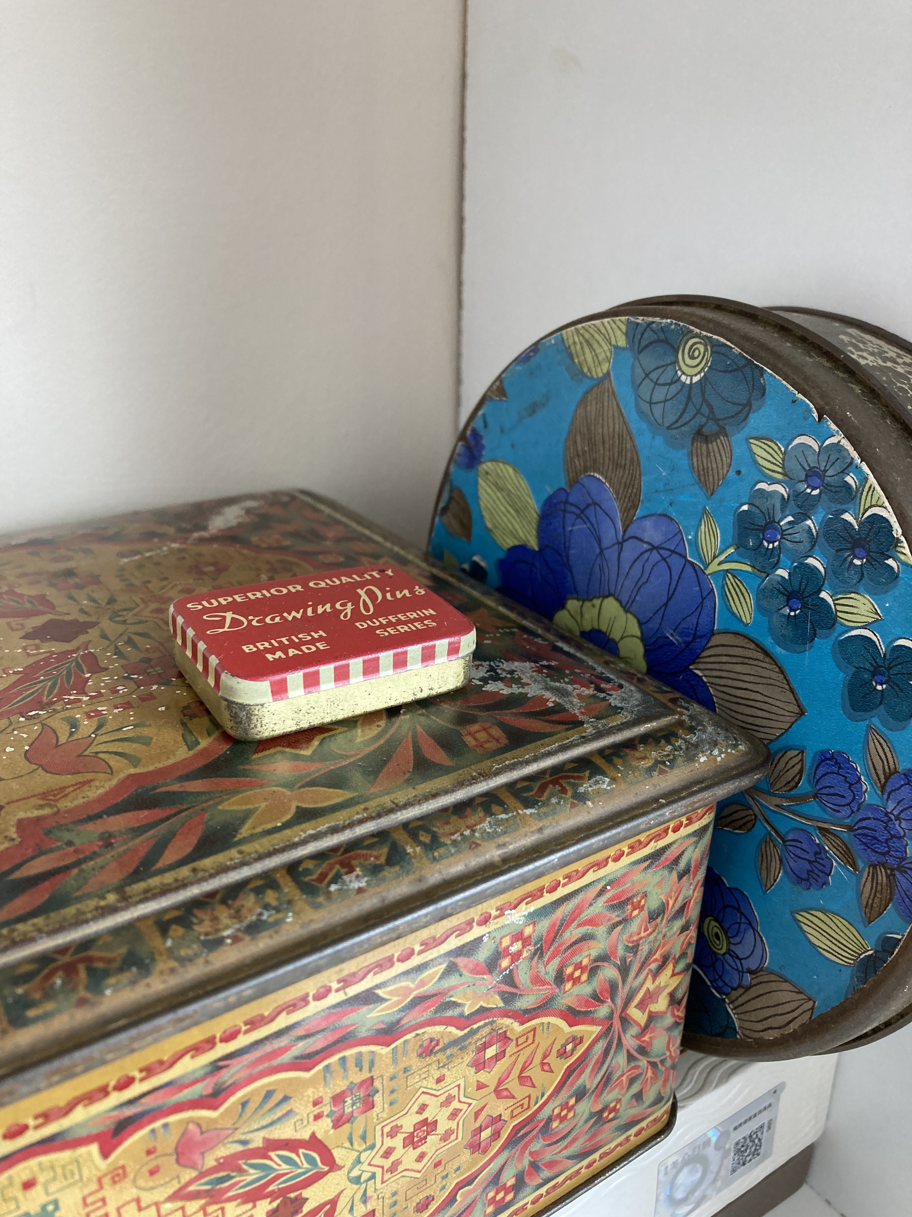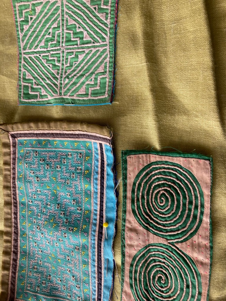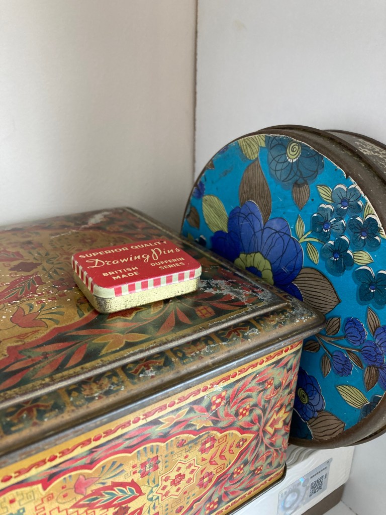 I’ve hung some ink and watercolour drawings from 2019 (ish) on the studio wall and I’ve done some more twig drawing, but at the moment it feels a bit like homework, so I have stopped. I am piling up little bits of fabric that could be embroidered, and I have found some old transfers that were my mum’s. I might do something with them. I am taking a leaf out of Kate Murdoch’s book, and Stuart Mayes’ by arranging colours, and making patterns with the things that surround me.
