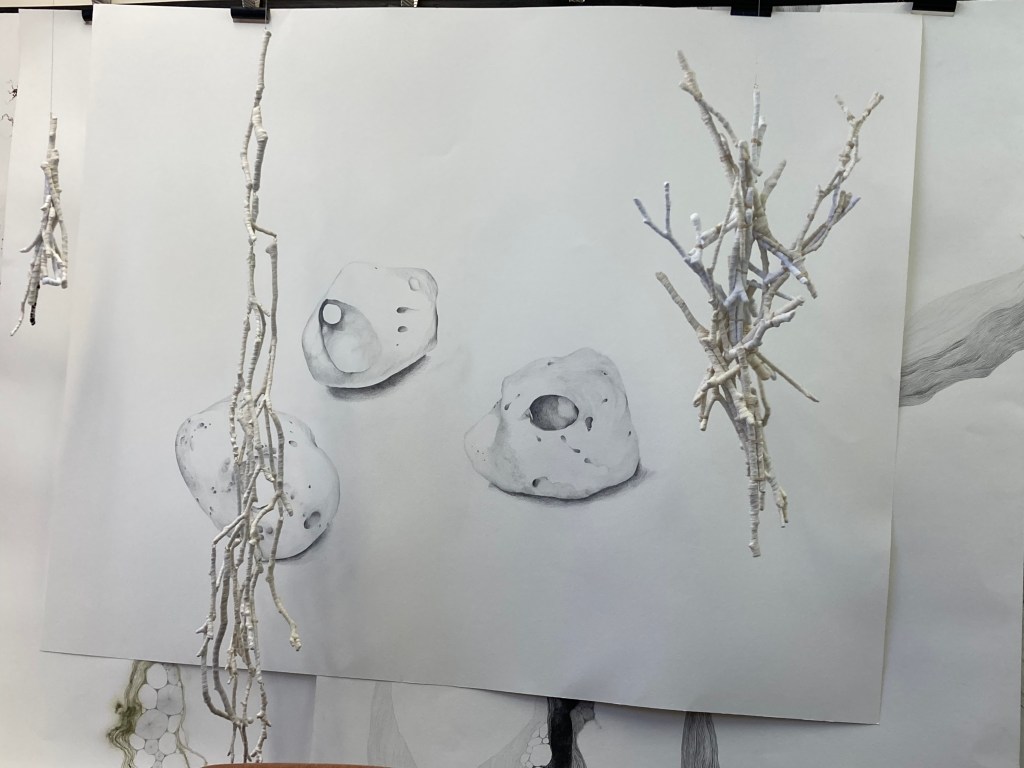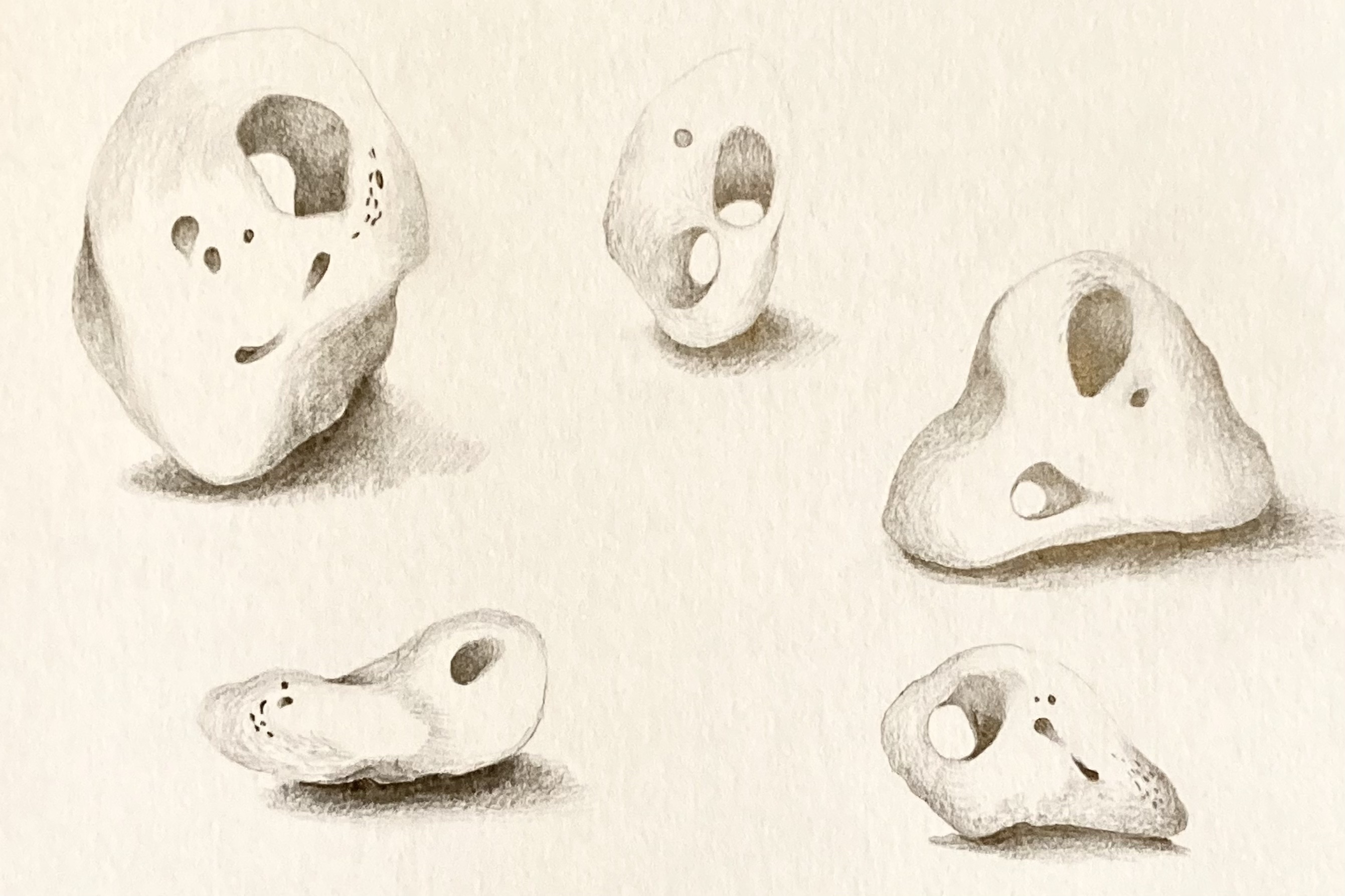 I draw the three hag stones in a variety of media, from all angles, in a variety of scales: