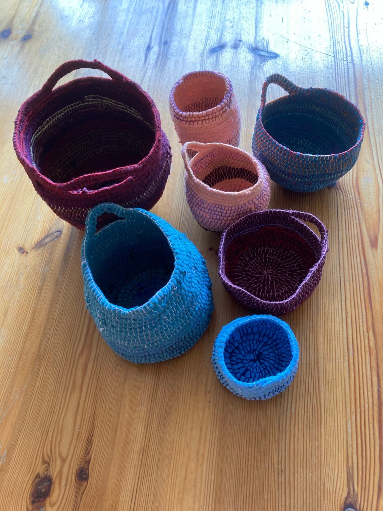 The textile work I have been doing at the moment is both playful and experimental. They might end up just as individual purposeful crafted objects, which is fine… but in addition to this, the more I make, the more I can see them becoming something else, more that one something else in fact. I might use them with Helen Garbett, and with Stuart, and on my own, in a variety of situations, each one offering different layers of meaning. This family of vessels I am making holds many possibilities.