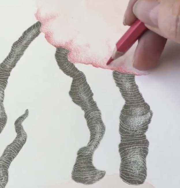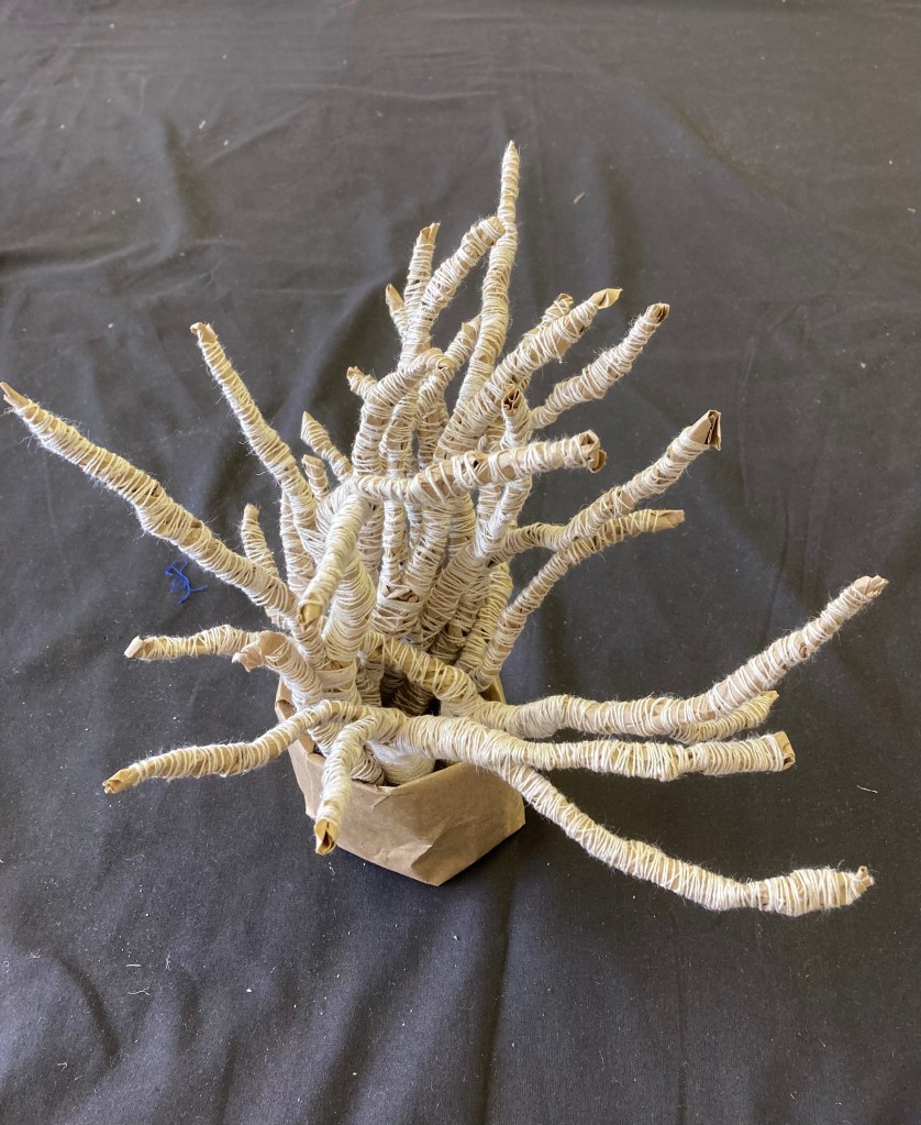 Yesterday a post popped up from 2018 of a drawing I was doing then as part of the Cause and Effect body of work. There were similarities to the work I’m doing now, making twigs from bound waste paper. I could say that the current work is a three dimensional version of the drawing.