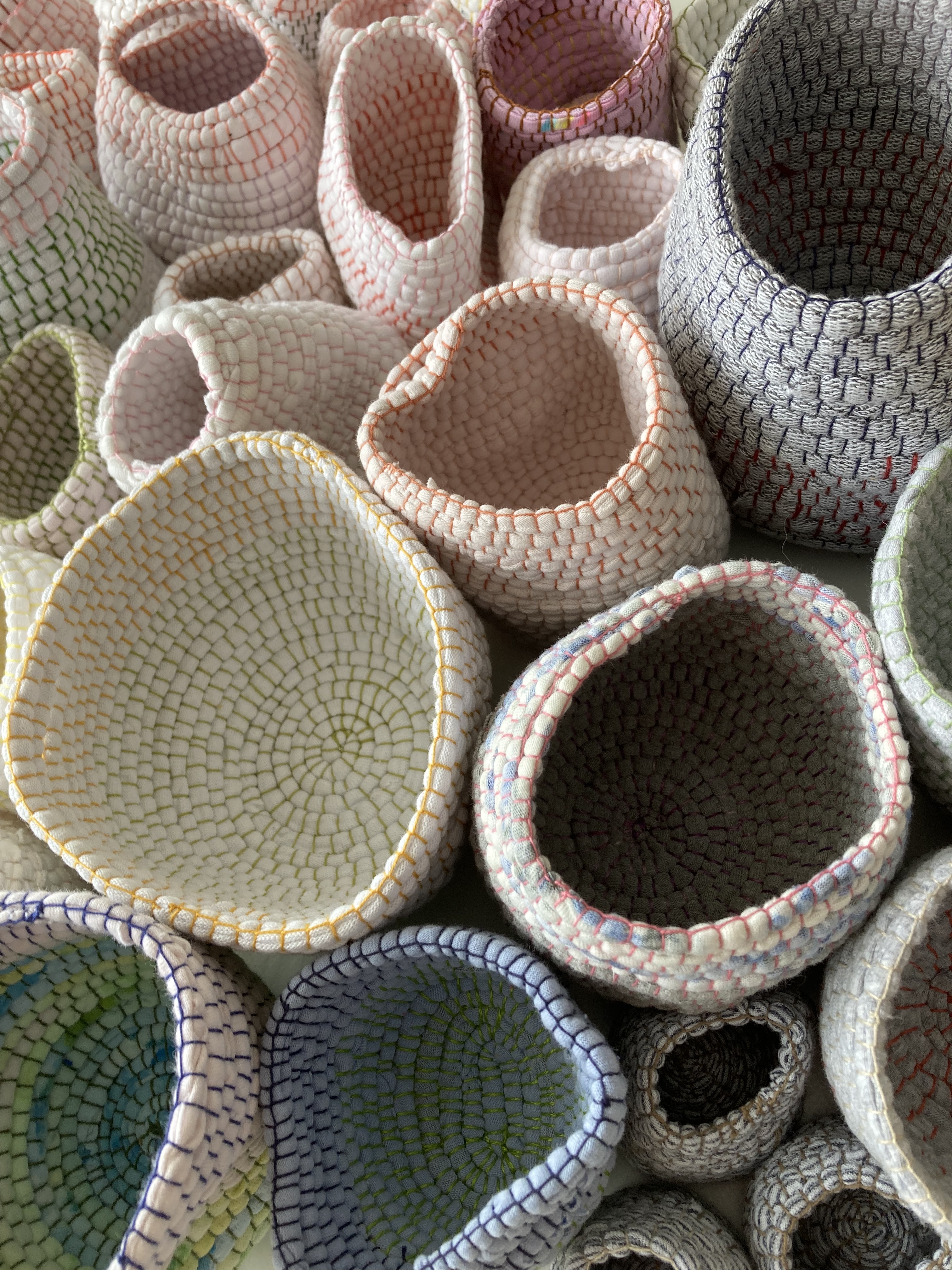 I wanted to have a play with these pods/vessels that I have been making. I’m still making. I have been chucking them in the corner, but I wanted to find out how much surface they would cover, so I have been spending time drinking tea and arranging them, then rearranging them.