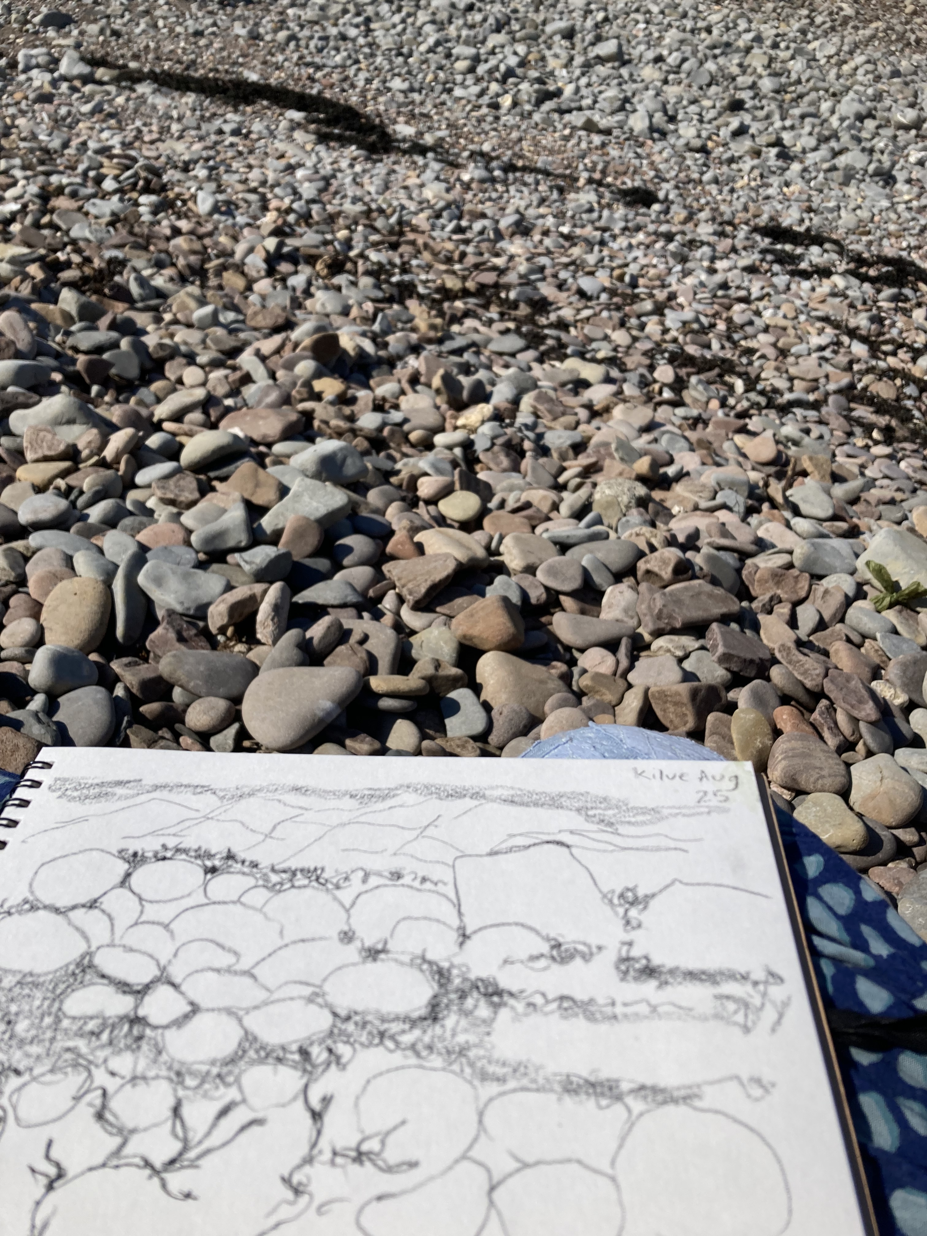 Last week we went on a field trip (sadly without Rick, but with artist Janet Tryner instead). We went to Kilve beach in Somerset. From the beach, across the water you can see the construction site of Hinkley Point C power station. The impact of the construction, even before it is up and running, is having a detrimental effect on the marine ecology. I’m not going into detail here, there are plenty of other places to read about it. Suffice it to say some of the statistics and methods being employed have shocked us enough to take some action, and make works in response.
